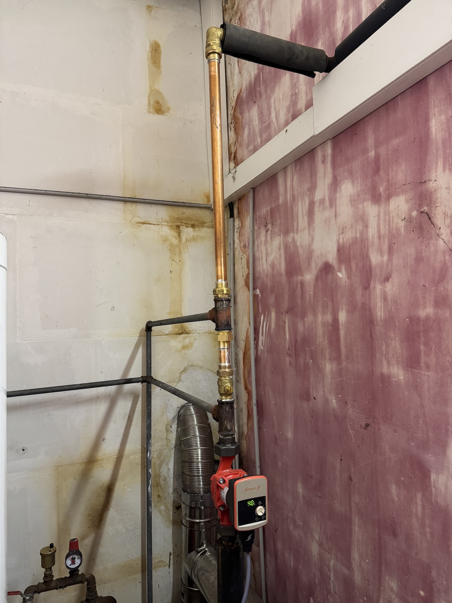 With water seeping out through the rust of the main pipe coming out of the boiler, the thought of it bursting if pressure was put through it was not very appealing.